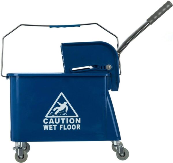 Curvaso 20L Kentucky Mop Bucket Set with Wringer System, Pole and 2 Mop Heads, Blue