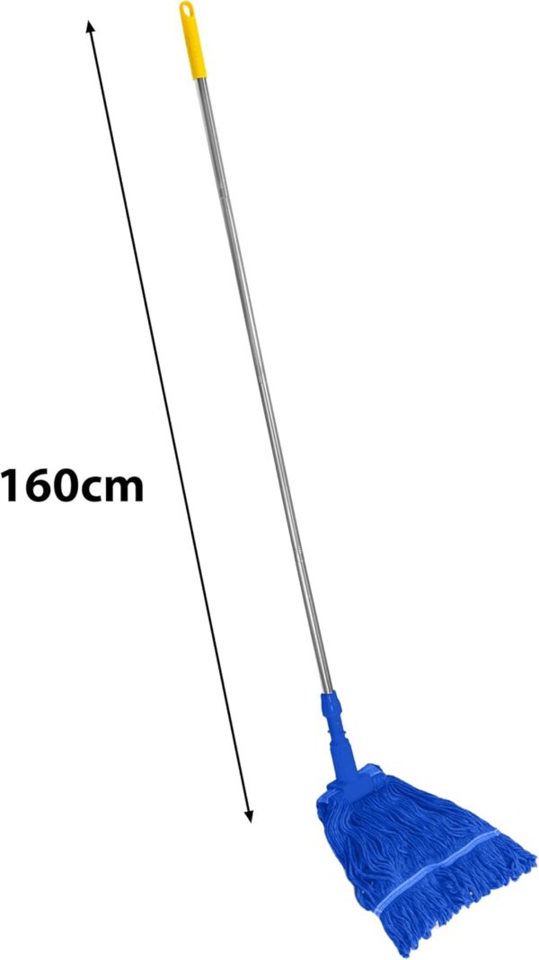 The complete kit includes a strong 160cm stainless steel mop pole and two highly absorbent Kentucky mop heads, making it indispensable for restaurants, schools, and offices.